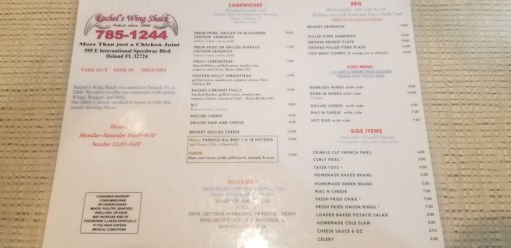 Welcome to Rachel's Wingshack, a true gem for chicken wing lovers located at 595 E International Speedway Blvd in DeLand, FL. This cozy, women-owned establishment blends a casual vibe with exceptional flavors, perfect for families and groups alike.